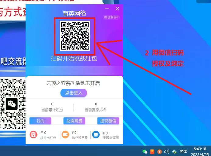 2、用手机微信扫屏幕右下角红包图标弹出的--》【二维码】,点击手机右下角--》“完整服务”--》应许--》绑定成功!